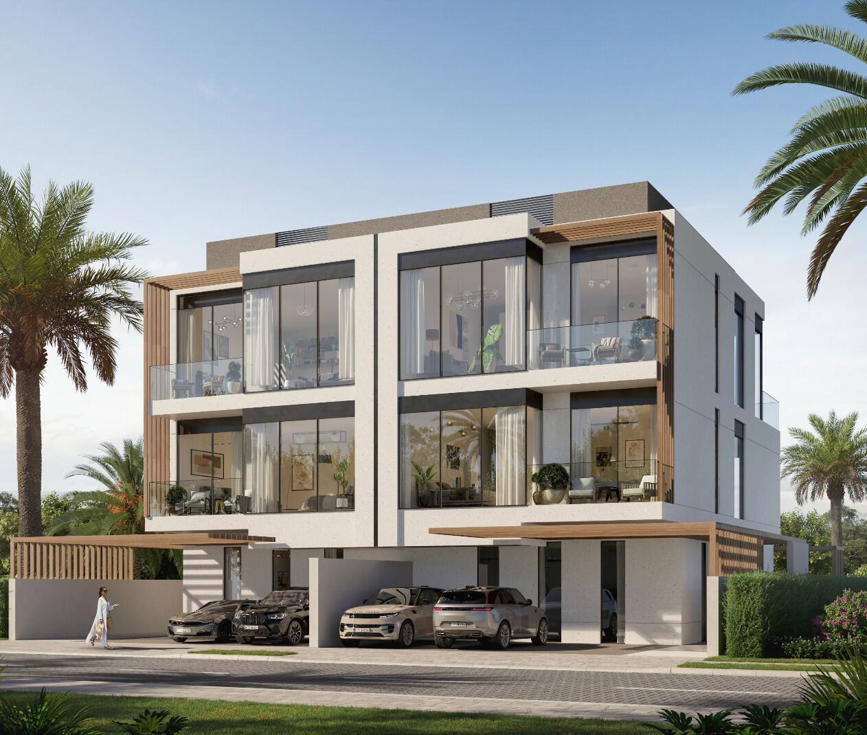 Each villa offers a bespoke living experience featuring a cinema, bar, family lounge, personal gym, sky lounge, terrace, and a backyard nestled amidst the greenery.