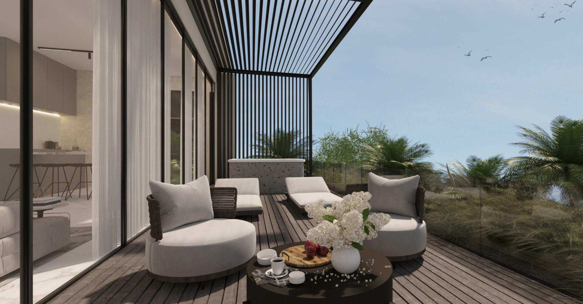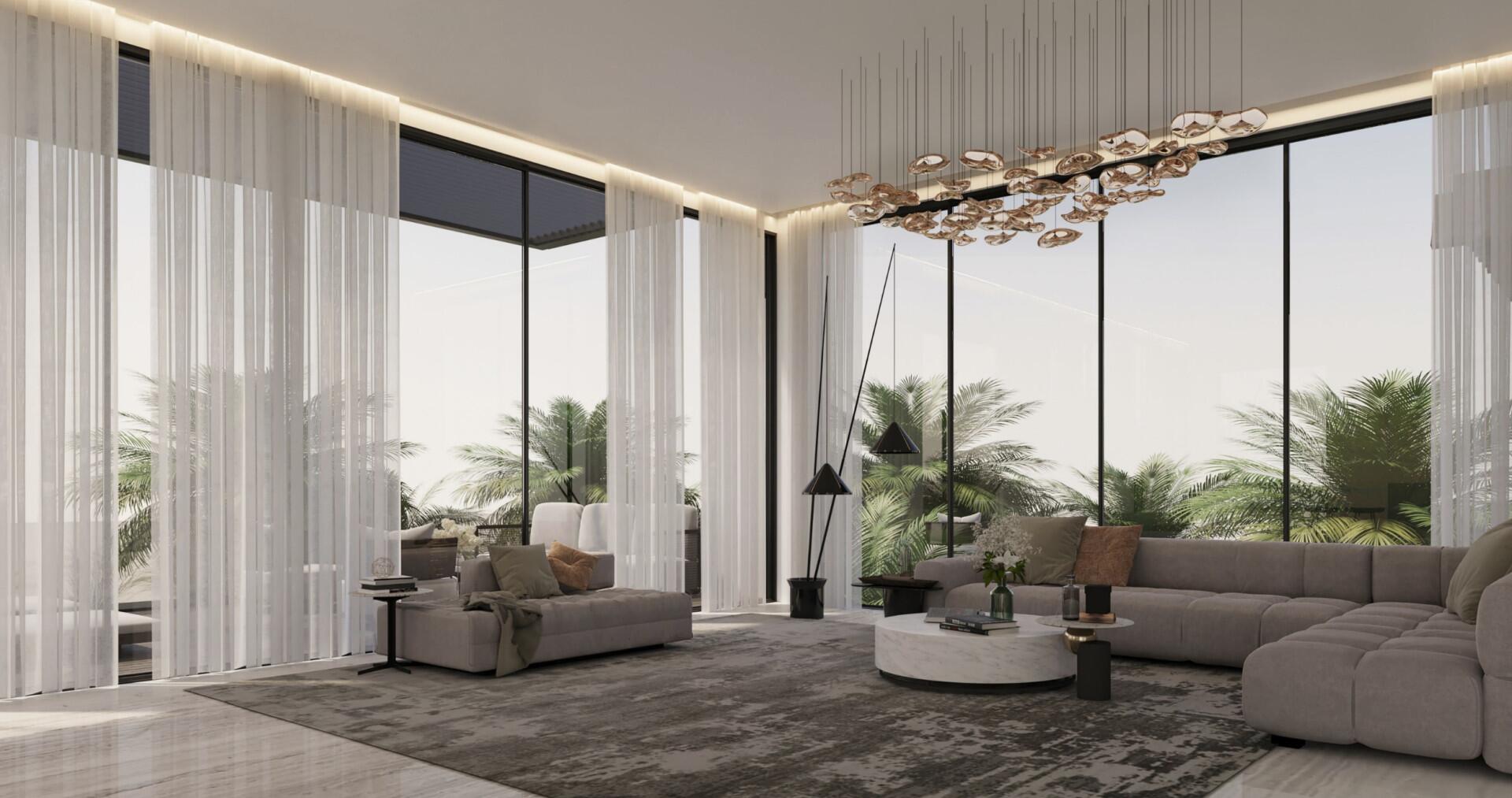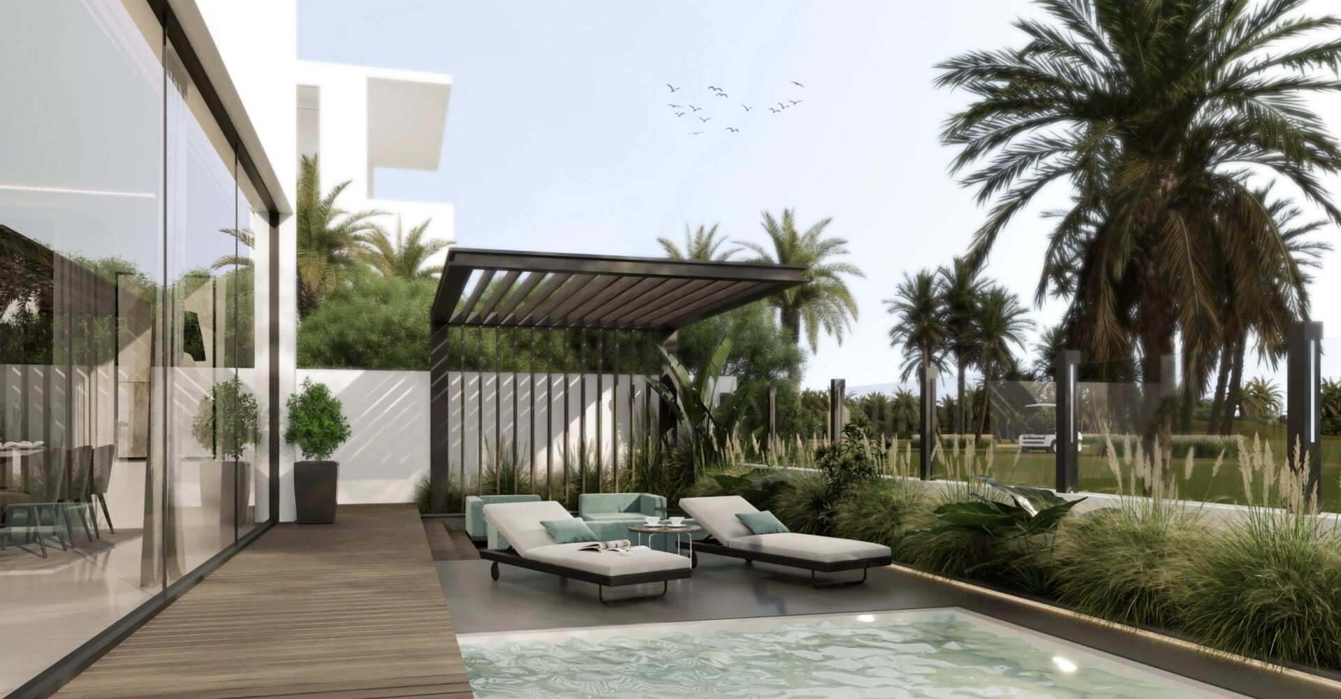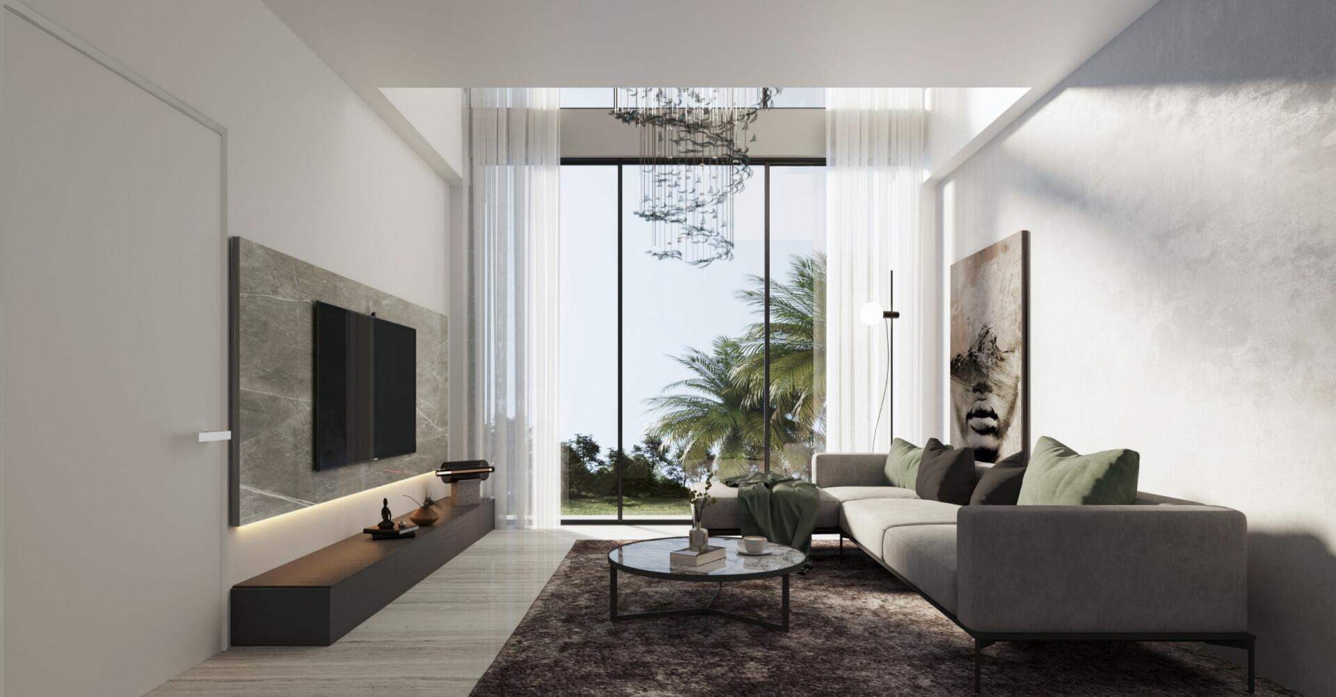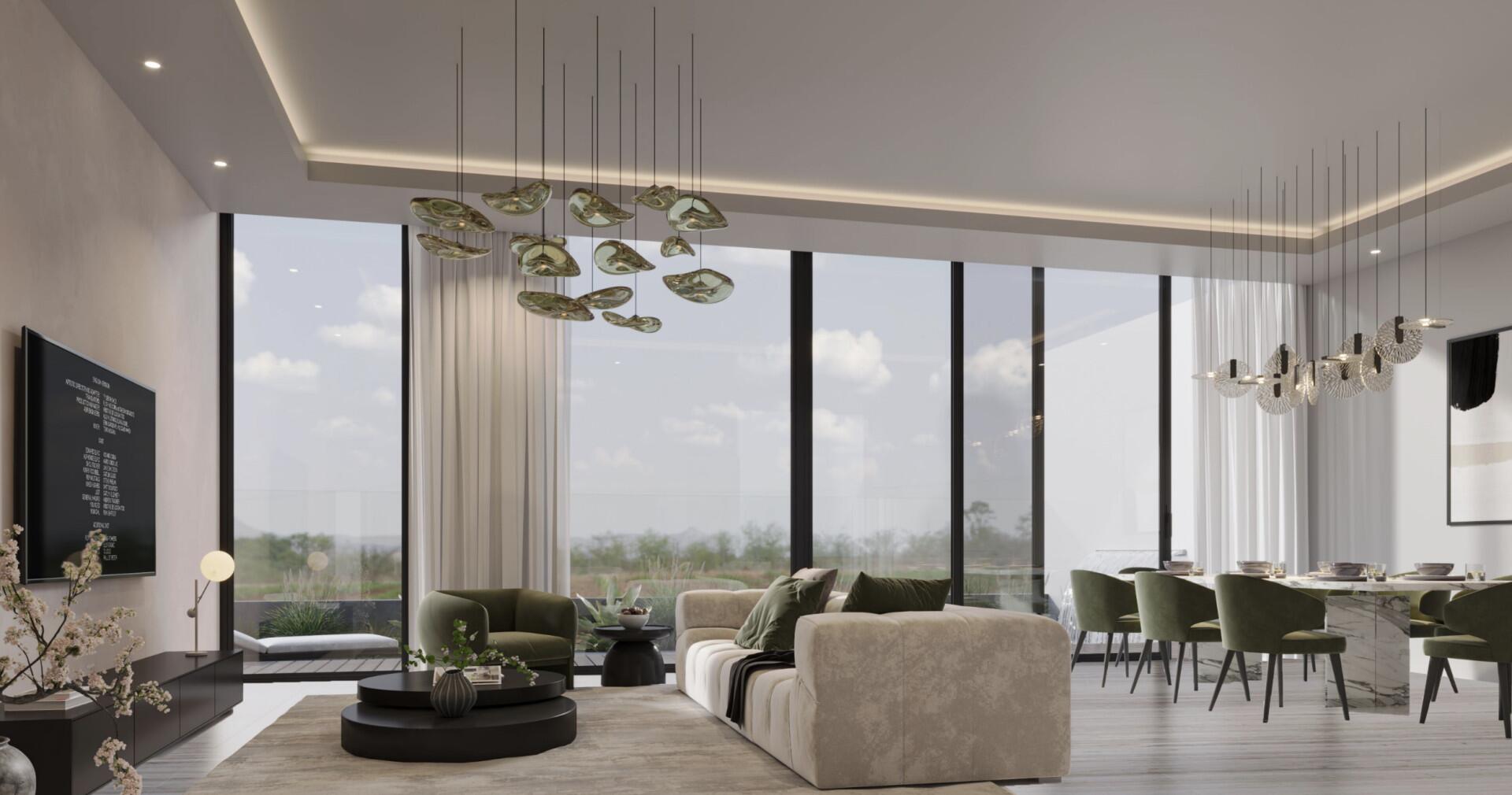 TERRA's villas boast breathtaking, uninterrupted views of the lush golf course, showcasing a minimalist yet elegant design. Neutral colors and essential materials accentuate the natural beauty, enhanced by luxurious finishes.